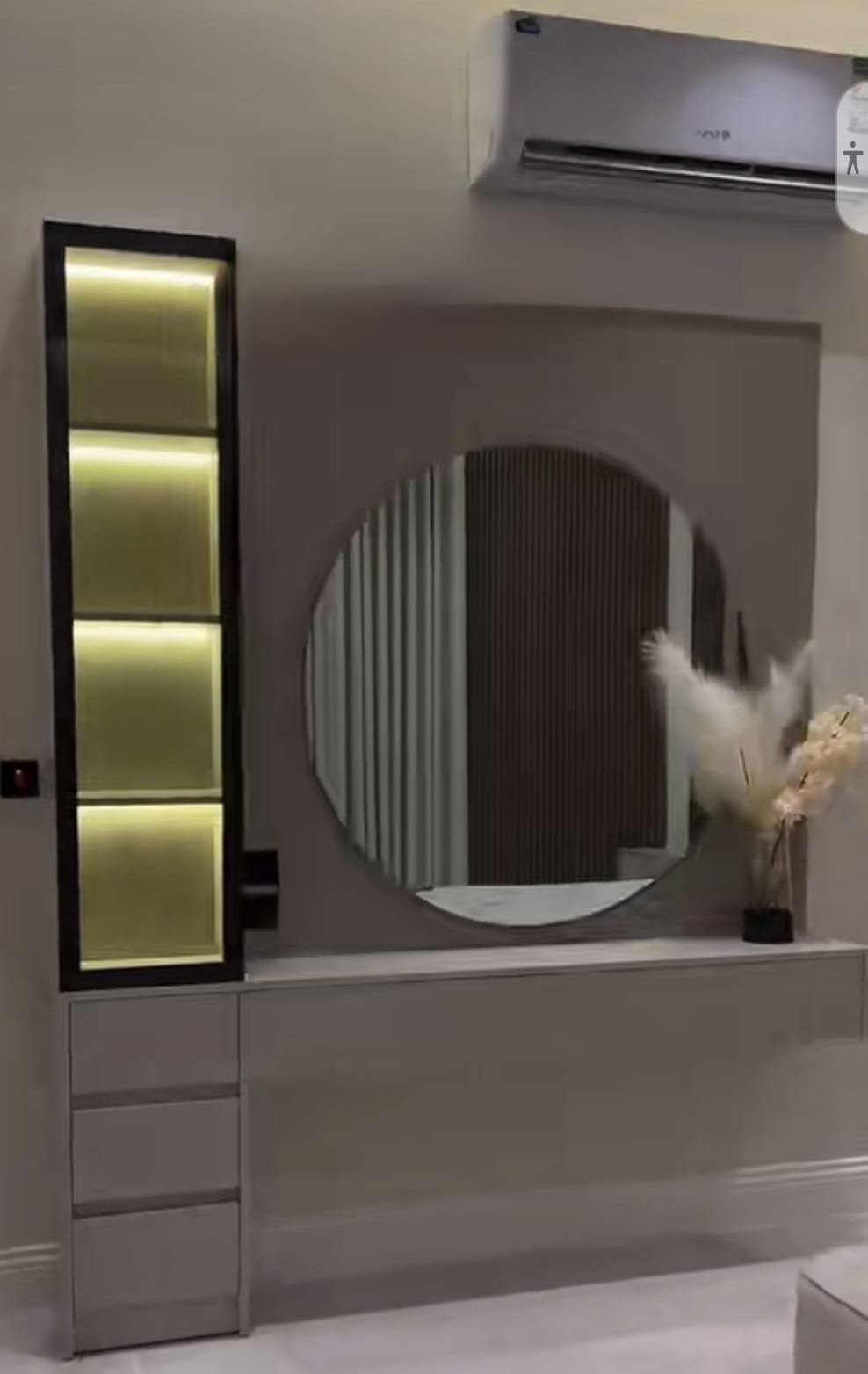رفوف مفتوحة لعرض الديكورات مثل النباتات، الكتب أو القطع الفنية.