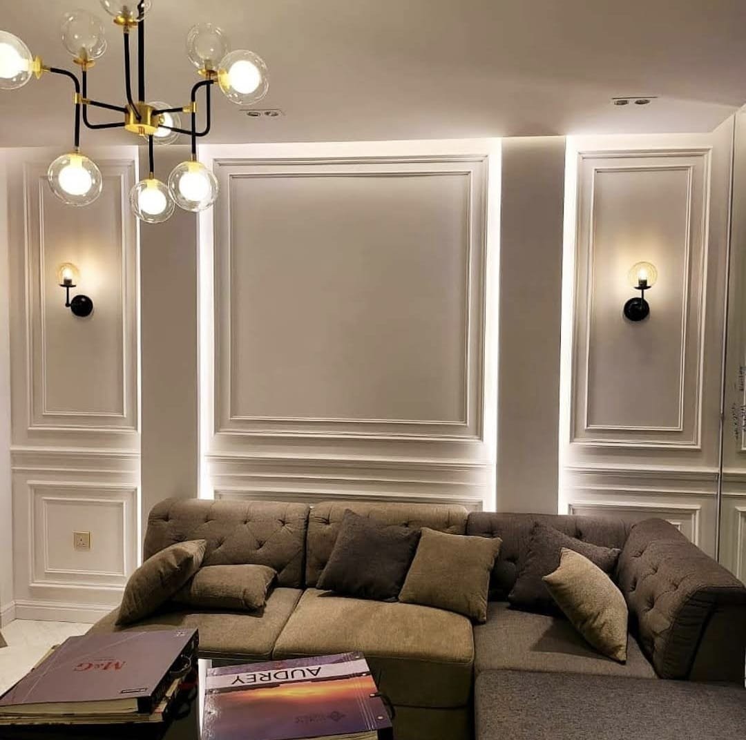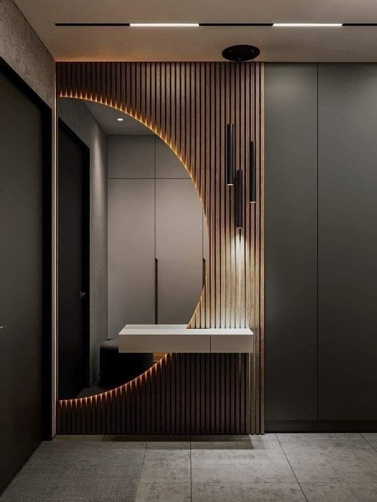 ترك بين الألواح فراغات تُستخدم لإدخال إضاءة LED خلفية تعطي عمقًا وظلالًا جذابة.