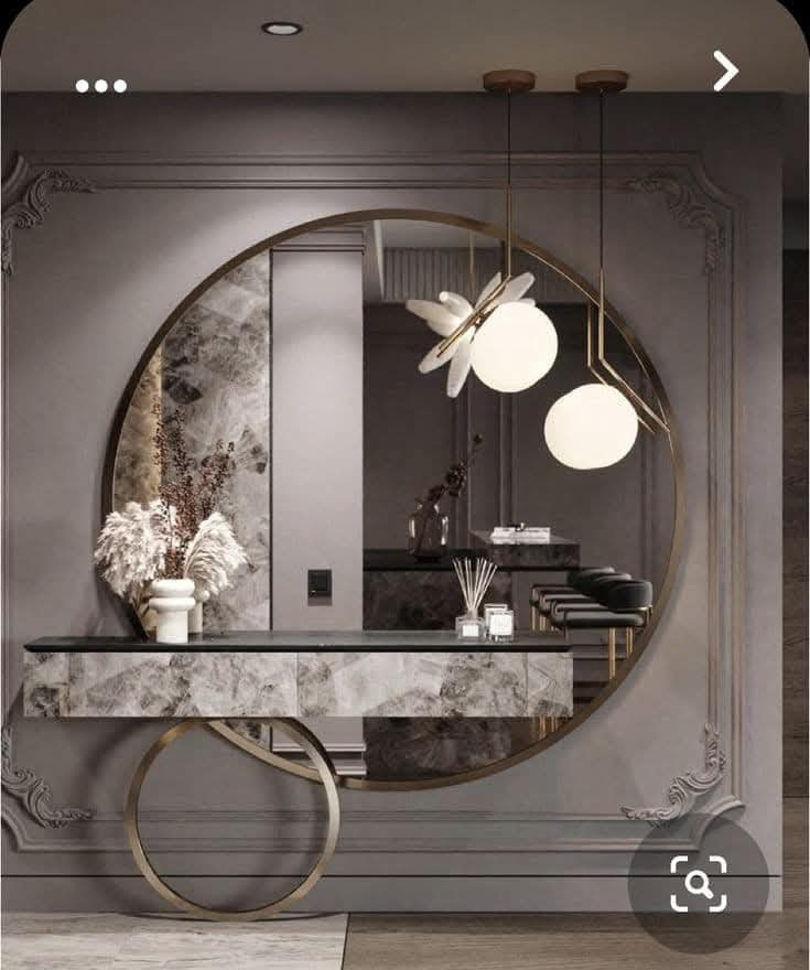 دمج رفوف معدنية أو خشبية حول الحواف لمنح إحساس بالفخامة.