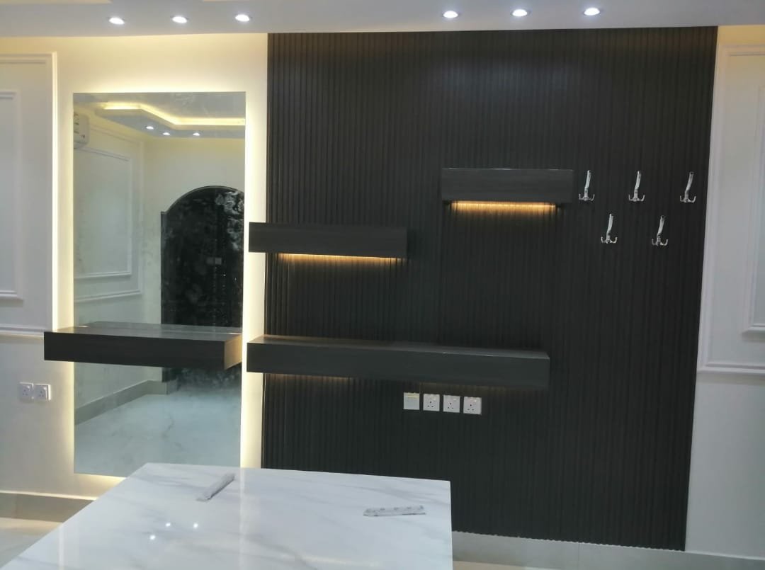 إضافة اللمسات النهائية: مثل الإضاءة أو الأرفف الجانبية.